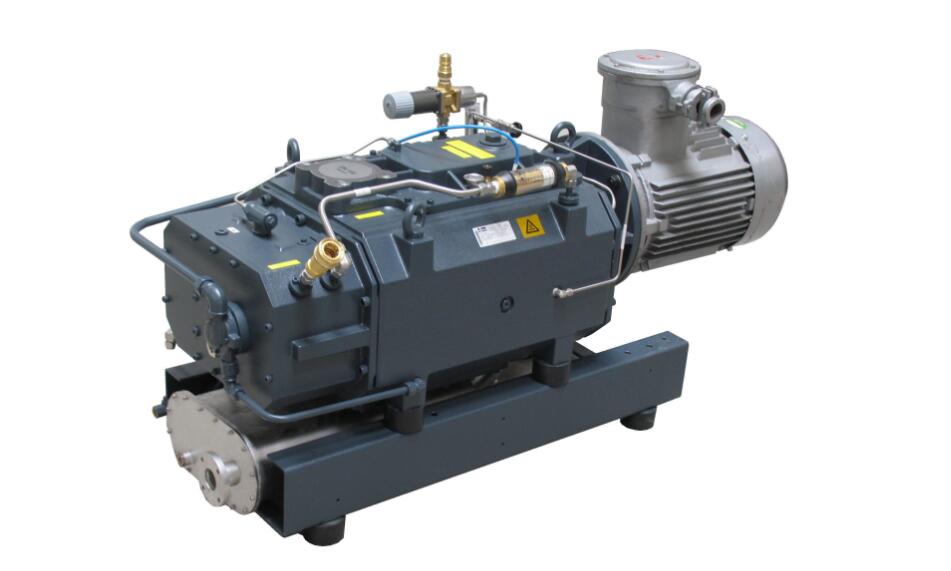 無油干式機(jī)械真空泵(又簡(jiǎn)稱干式機(jī)械泵)是指泵能從大氣壓力下開始抽氣,又能將被抽氣體直接排到大氣中去,泵腔內(nèi)無油或其他工作介質(zhì),而且泵的極限壓力與油封式真空泵同等量級(jí)或者接近的機(jī)械真空泵。